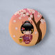 Sakura Kokeshi Doll - Geisha Girl on Peach 6 Cm Round Badge
