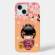 Sakura Kokeshi Doll - Geisha Girl on Peach Case-Mate iPhone Case