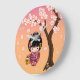 Sakura Kokeshi Doll - Geisha Girl on Peach Large C Clock
