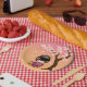 Sakura Kokeshi Doll - Geisha Girl on Peach Paper Plate
