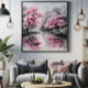 Sakura over River Ink Painting design will be perfect for fans of Asian culture. Pink sakura trees brighten the design.