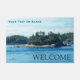 A rendering of a tree-covered, rocky island off the coast of British Columbia. Text reading "WELCOME" also appears and you can add your own additional text. The word "salish" is used by linguists to refer to several related languages of the indigenous residents of the US Pacific Northwest and British Columbia. The term "Salish Sea" refers to an area consisting of Puget Sound, the Strait of Juan de Fuca and the Strait of Georgia. British Columbia's Gulf Islands, of which the island in this image is a part, are located in the Salish Sea.