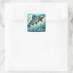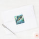 Salmon Jumping Mosaic Floral Blue Green Peach Square Sticker