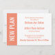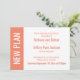 Here's a bold, modern card for notifying your guests if it's become necessary to change your wedding date. Use the template fields to add your personal details and make this unique, simple design your own. A colour block along the left is salmon, matching the text and back of the card; "NEW PLAN" appears in bold white over this strip on the left. All fonts and colours are also editable. Please reach out with any special requests or for customising assistance. Other pieces with alternate wording are also available in the collection.
