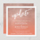 This design features a modern, handwritten script font used to create a graphic depicting the word "update". A subtle watercolor overlay was placed at the top, adding texture and creating a gradient, ombre effect over your background colour. For an added bold effect, I've placed a thick white border around the edges of the front of the card. Use the template fields to add your personal details and make this unique, modern design your own. The background can be changed to any colour you prefer. Please reach out with any special requests or for customising assistance. // 100 //