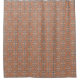 This shower curtain has an art deco design of three salmon ovals broken across two very thin salmon rectangles with slate blue lines on a field of rust. Want the same design with different colours? Message me.