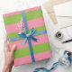 Salmon Pink Apple Green Lrg Striped Wrapping Paper