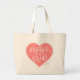 Cute Personalised mother of the bride tote bag features colour editable salmon pink heart shape, modern script, and custom name, great wedding party gifts.