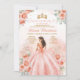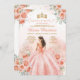Salmon Pink Peach Princess Floral Gold Quinceañera Invitation