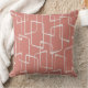 Salmon Pink Retro Lino Print Geometric Pattern Cushion
