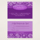 Salon gift card / certificate (Business Card) for nail or hair salon or Spa with pretty floral / flower pattern in elegant and trendy purple damask and stripes with oval company name bubble.