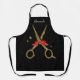 Black apron for hair salon stylist or barber shop. Available in small, medium and large size. Haircut scissors logo with elegant script typography. Also great for BBQ, cooking, baking, dinner party, washing, art & crafts work etc. Create them for personal use or business.