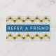 Salon Referral Business Card. Design has a modern geometric pattern and colour scheme. Please contact me for colour change request. Custom referral business card with a referral promotion to reward your customers for referring their friends. Great for marketing your salon or stylist and to increase your client list. Enter in your own promotion, disclaimers and company information. Perfect for a salon, barber, stylist, beauty salon, beautician, or mani and pedicure salon.