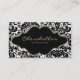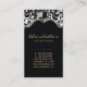 Makeup artist salon spa business card with pretty floral damask background and gold finish card.