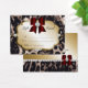 Christmas gift card with pretty heart diamonds, a bow and modern stylish Leopard animal print.