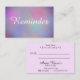 * Appointment Reminder Metallic Iridescent Faux Foil - : Very Awesome artistic and abstract modern business card for someone who is seeking a beautiful girly chic feminine artsy design for their branding. The back text is on a LAVENDER background. The colours are very organic in shape.