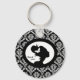 Salon / spa key chain gift with butterfly woman silhouette and damask background in black and white. Trendy and elegant great for any hair or nail or tanning salon or wellness spa or cosmetologist or makeup artist.