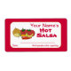 The labels say, "Your Name's Hot Salsa." Add your name in the template to personalise. You can change the font style or colour or the background colour to personalise, or any of the words.