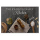 This Salt and Pepper cutting board is the perfect addition to any kitchen. Elegant dark background with salt, pepper, olive oil, and dried basil throughout.