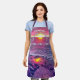 Infuse your kitchen with the glow of golden hour. This personalized apron captures the soul of a seaside evening, with a radiant sunset melting into ocean waves and rocky shores bathed in pink, orange, and violet hues. The deep purple straps add a touch of elegance, grounding the vibrant scene in cozy sophistication.