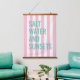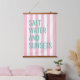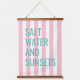 Create a welcoming and breezy atmosphere in your coastal home with our Salt Water And Sunsets Pink Cabana Stripe Hanging Tapestry. This stylish tapestry features a ice cream pink and white cabana stripe pattern, paired with the playful "Salt Water And Sunsets" message, bringing sunny beach vibes into any room. It's a cheerful and stylish addition to any coastal retreat! Matching accessories available in Family Beach House Pink Cabana Stripe Collection.