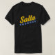 I give wanted to give this a 4 instead of a 5 because these Basic DARK T0shirts run unexpectedly SLIM or Narrow. Which is great if you do not have a potbelly, but I have a paunch. It isn't the shirt's fault that I've got a beer belly. The design and shirt itself is a quality cotton shirt. The color is more of a deep purple, but still a very pretty color. The Basic DARK T-shirts run a bit SLIMMER than the Basic Ts. The neck is a fraction narrower (or seems to be narrower) also. I'm a paunchy middle-aged woman and my neck is 12 inches (31cm) thick and the neckline fell about the same as in the photo of the man, and I had the desire to tug it a bit. So if you're a thick necked man or like loose shirts, be aware these are slimmer shirts. Once I get rid of my lockdown paunch it'll look great. The shirt washed well in cold water with no apparent bleeding. We don't have a dryer, so it hung dry. Did not shrink. Love the colors and the design. The design looks smaller on my shirt than it does on the model on-line. But still, it looks good on the shirt. The printing looks as it does on the model, just the size seems fractionally smaller. Washed garment in cold water, hung dry and design appeared unaffected.