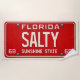 Travel back in time to the year 1969 with this vintage-inspired SALTY license plate design. Bold embossed-style cream text pops on the red contrast. The use of retro-style lettering, realistic screws and Sunshine State slogan keep the vintage vibe realistic. This unique towel is perfect for your next beach day, surf session, boat trip or pool party.