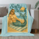 Salty Beach Retro Pin-Up Mermaid Art Funny Coastal Fleece Blanket