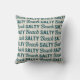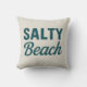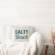 Whether you're salty from the sea breeze, or full of salty attitude, this graphic print 'Salty Beach' reversible throw pillow is a great way to show off your love for the coast and bring the ocean into your home decor. Teal blue lightly distressed vintage and modern fonts create a playful pattern set on a white sand background. Perfect for beach houses, surf shacks, and coastal condos. | Matching throw blanket available in store.