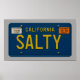 Travel back in time to the year 1969 with this retro-inspired California license plate design. Bold embossed-look yellow text with the custom tag number "SALTY" pops on the blue contrast. The vintage style lettering, tag stickers and panhead screws bring a nostalgic vibe. The artwork is set on a smoky gray background. Perfect for lovers of vintage and coastal designs, this artwork will be a fun addition to your beach-themed décor.