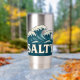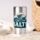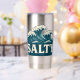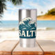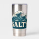 Giant whitecap waves roll toward the beach in this retro style coastal graphic. Cream vintage SALTY text makes a bold contrast against the teal blue ocean. Made for beach bums, surfers, sun seekers and anyone living on island time. This stainless steel tumbler is pure seaside vibes and ocean energy. Insulated to keep your drink as chill as you.