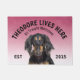 Saluki Personalised Dog lover welcome doormat. This welcome mat can be personalised with your dog’s name, the slogan can also be changed or you could use a picture of your own dog (make sure it's transparent). Text reads: Theodore lives here…. All treats welcome