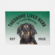 Saluki Personalised Dog lover welcome doormat. This welcome mat can be personalised with your dog’s name, the slogan can also be changed or you could use a picture of your own dog (make sure it's transparent). Text reads: Theodore lives here…. All treats welcome