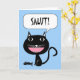 Salut! Hello in French, Black Cat with Fish Bones Card