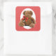 Ideal for sealing your baby shower invitations or gift, this square sticker has an image of good old Sam, a shaggy teddy bear with a red bow around his neck who sits in a white oval with a red border on a background of white polka dots on red. See matching custom-cut vinyl sticker, confetti, favour bag, favour box, favour tag, gift bags, label and wrapping paper. See the entire Kids’ Corner Sticker collection in the INVITES | Stickers & Labels section.