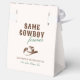 The “Same Cowboy Forever” bachelorette suite is part of a spirited collection that blends Western charm with playful elegance. Featuring bold brown stripes, rustic typography, and a vintage cowboy hat illustration, this suite sets the tone for a fun, boots-on party weekend. With a modern-meets-country aesthetic, each piece in the collection perfectly complements Western-themed celebrations, desert destinations, or ranch getaways. Ideal for brides who love a little country flair with their champagne toast.