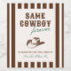 The “Same Cowboy Forever” bachelorette suite is part of a spirited collection that blends Western charm with playful elegance. Featuring bold brown stripes, rustic typography, and a vintage cowboy hat illustration, this suite sets the tone for a fun, boots-on party weekend. With a modern-meets-country aesthetic, each piece in the collection perfectly complements Western-themed celebrations, desert destinations, or ranch getaways. Ideal for brides who love a little country flair with their champagne toast.