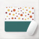 This mouse pad has a design with a solid bottom and circles at the top. It is in mid-century modern colors. It looks like soda bubbles to me, hence the name.