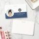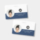 Easily personalise this Custom Horizontal Business Minimalist Employee Name Badge with Photo, Name, profession and business logo. A simple business design with round photo, in navy blue and white colours fully customisable in front and back with the same design, sans-serif basic and modern fonts and a professional and clear look. Avaiable with lanyard, metal clip or with retractable. No minimum order.