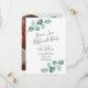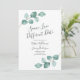 This botanical wedding change the date flat card features a modern design template with the words "Same Love Different Date" in hand lettered black script with your new wedding details below for you to personalise bordered by hand painted watercolor eucalyptus greenery. The back of the card has a photo for you to customise of your own. Best of wishes for your wedding! Designed by Susan Coffey.