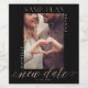Update your family and friends with your new wedding date with our modern and minimal new date photo wine label. The design features a modern single photo layout to display your own special photo. "Same Plan" "New Date" is displayed in a modern faux rose gold foil typography design with names and new wedding date.