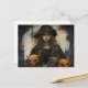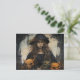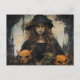 A postcard featuring a vintage-looking witch with some...odd companions.