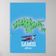 Samos Greek Island map with a beautiful old vintage style red bi plane.