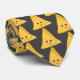 Awesome food themed necktie, patterned front and back with tasty Indian samosas, over a dark grey background