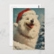 Wishing you a pawsitively festive season! This Christmas card features an adorable Samoyed donning a Santa hat, spreading cheer with its fluffy charm. The whimsical image captures the spirit of the holidays, promising warmth and joy. Send your loved ones a furry dose of holiday happiness with this heartwarming card, as the Samoyed brings a touch of canine magic to your Christmas wishes.