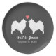 Bought this plate for a Christmas present. I wasn't expecting a plastic plate...should've researched melamine. The design, however, was just beautiful! My sister adored the white Samoyed silhouettes and the printing was perfect. She can't wait to display this plate in her home!
