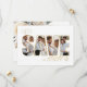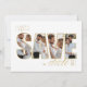 This wedding suite with it's lush, dramatic florals from creamy white to blush pink, gold swirl accents and beautiful watercolor backgrounds, creates an elegant, romantic vibe, giving just a hint of what guests can expect on your big day. This unique 'Save the Date' card provides a template to easily add four of your best photos to display in the lettering background. A corner floral and striking gold script text add to the overall elegance of this card. Search ID1022 to see all the products in this wedding suite.