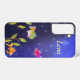Samsung Galaxy S22+ Case in Deep Blue with illustrated comical fish. The name can be changed. Thanks to Creative Fabrica for some of the elements in the design.