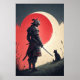 Step into a world of mystique and serenity with this captivating wall art featuring a samurai warrior standing guard under a striking red moon, accompanied by a curious black cat. The scene blends the stoic strength of the armoured samurai with the enigmatic presence of the cat, creating a powerful contrast between human resilience and feline curiosity. The vivid red moon serves as a dramatic backdrop, adding depth and intrigue to this atmospheric illustration.