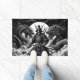A samurai warrior in front of Japanese dragons face to face in a black and white style to accentuate this tension effect.